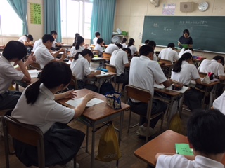12日(月)の1限と6限を使って、保育福祉体験のまとめをしました。体験を終えてのアンケートや感想文、施設の方へのお礼の手紙の下書きなどにしっかり取り組みました。そうしているうちに、楽しかった体験中の話があちこちで始まっていました。