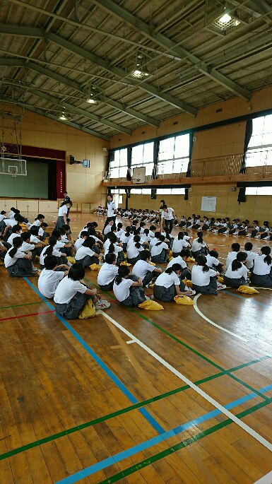 6限目に体育館で一泊移住の隊形練習を行いました。