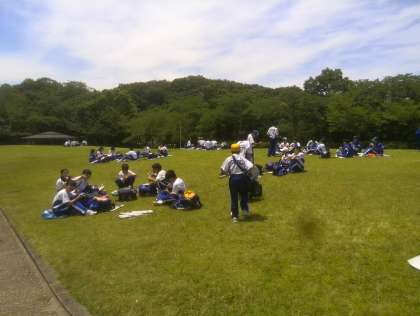 ようやく水間公園に到着です!待ちに待った昼食で、みんな笑顔で食べています。