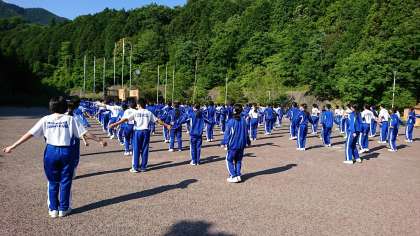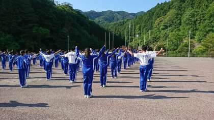 まだ少し眠い目をこすりながら、目覚め、みんなで元気よくラジオ体操をしています。