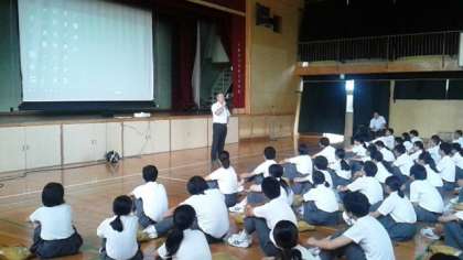 1日(土)、1限授業後に体育館で、中央サポートセンターと東住吉警察の方に来ていただき、薬物乱用防止教室を行いました。DVDを見たり、実際にあった話を聞いたりしました。他にも、万引きや花火、携帯電話の使用など、この夏気を付けるべきことについてもお話してくださいました。