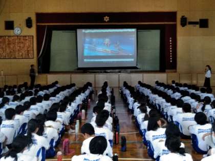 2008年北京オリンピック選手の橘雅子さんを講師にお迎えし、一年生にシンクロナイズドスイミングについて講話と実践指導をおこなっていただきました。