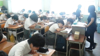 授業後は、教室に戻って、感想を書きました。高等学校の授業を受けることで、学習意欲を高め、進路選択を考えるきっかけにしてほしい、と考えています。高等学校の先生方、本日はお忙しい中、ありがとうございました。