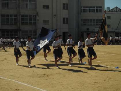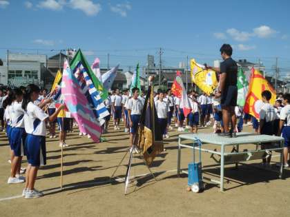 8日(金)の6限に3回目の全体練習があり、開会式、閉会式の練習をしました。この日は、学級旗を用いての行進、選手宣誓を行いました。この3回目が最後の全体練習です。来週の予行・本番に生かせるようにしましょう。