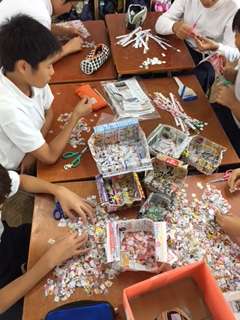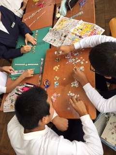 2年生も文化の集いに向けての取り組みが始まっています。2年生は全体で一つのモザイク画を作成します。モザイクはチラシを切り取ったものを使うので、今週はチラシ切りや色分けをしました。どれだけのチラシが必要かわかりませんので、ご家庭でも集めていただけるとありがたいです。