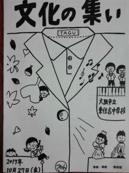 26日(木)、明日は「文化の集い」ということで、会場や展示作品などの準備をしました。また、プログラムが完成しました。本日、生徒用と保護者の方用に2部配布していますので、生徒たちから受け取ってください。表紙は美術部の3年生が描いてくれました。