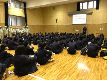 今日は地域の方々や消防、区役所の方などが来られて、各学年に分かれて防災についていろいろ勉強しました。