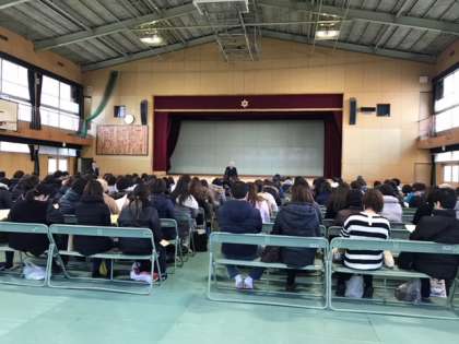本日14時30分より4月入学予定の新入生保護者説明会の本校体育館にて開催いたしました。