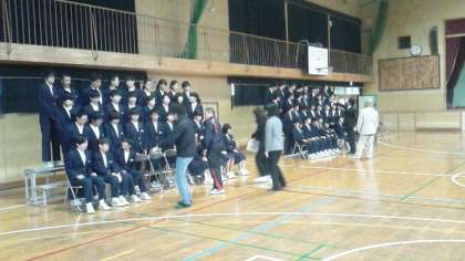 11日(水)の5限に体育館で職員写真と学級写真を撮りました。職員写真を撮った後に、3年、2年、1年の順で体育館に集まり、撮影を行いました。