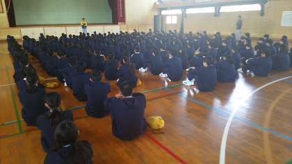各学年とも、週に1回、学年集会を実施しています。学年集会では、学年の先生からの講話をしたり、学年で起こっていることに対しての子どもたちへの問題提起などをしています。<写真:上から順に、1年生、2年生、3年生>