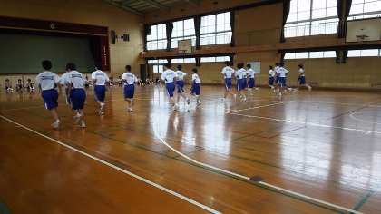 2年生保健体育授業のようすです。本日は、体力テストでシャトルランを実施しました。全員が真剣に取り組んでいました。