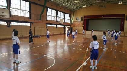 3年生保健体育科(女子)の授業のようすです。球技の単元に入り、バレーボールをしているところです。子どもたちは、楽しみながら一生懸命ボールをおっかけていました。