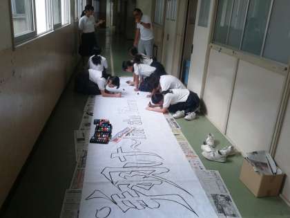 25日(金)の放課後から70期生の横断幕の制作が始まりました。美術部を中心としたメンバーが、協力して取り組んでいます。現在は、下絵が完成し、色塗りに取り掛かっています。完成後は、修学旅行をはじめ、様々な行事に活用していく予定です。