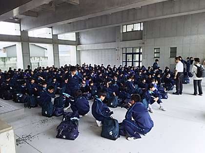 いよいよ当日を迎えた1年生の一泊移住です。準備をしっかりして元気に登校してくれました。写真は出発式の様子です。保護者の方もお見送りに来てくださり、これから出発です。行先は、淡輪の海洋センターです。あいにくの雨模様ですが、雨は昼過ぎにはやみそうです。