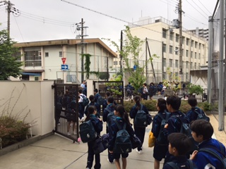 最後は担任の周りに集まり、各クラス解散しました。帰るときの様子を見ると、明るく楽しい表情をしていました。
