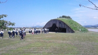 宇佐に到着しました。掩体壕の前でセレモニーを行います。
