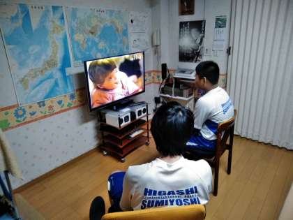 1枚目…午前、施設の方より体験内容の説明を聞いたあと、ビデオを見て介助について学習しています。