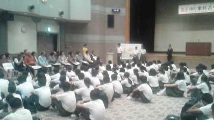 院内文化交流ホールにて、歓迎式を行いました。安心院の代表の方や校長先生、生徒代表のあいさつがありました。