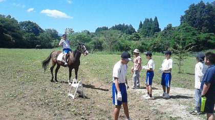 乗馬体験をしているところです。先生も挑戦させてもらいました。昨日は、庭でバドミントンや弓矢をして遊んだそうです。