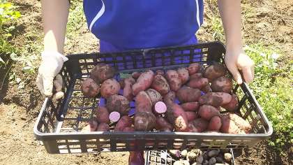 さまざまな種類のジャガイモを収穫しているところです。
