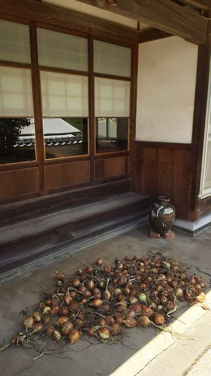 今朝はタマネギとジャガイモの収穫をしました。ジャガイモは茹でて、バターと塩で美味しくいただきました。