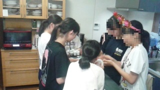次の班は、スイートポテト作りをしていました。その前はパーティーをしていたようで、とてもにぎやかに楽しんで作っていました。