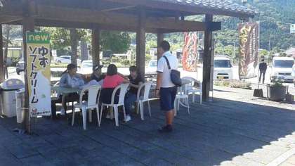 こちらの班は観光中だったので、道の駅で待ち合わせして合流しました。仲良くソフトクリームを食べています。