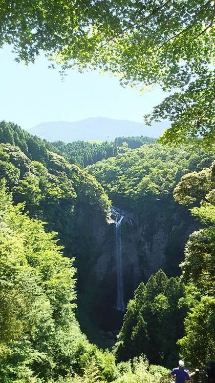 日本滝百選にも選ばれた「福貴野の滝」です。落差はなんと60m。この滝に連れてきてもらっている子どももいます。