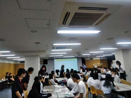 兵庫県立大学の准教授である竹内和雄先生と竹内研究室の大学生、また他の学校の生徒達と一緒に、スマートフォンのトラブルを防止するためにはどうすればよいかを話し合いました。