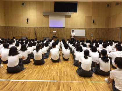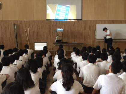 今日は中央少年サポートセンターから来ていただいた講師の方に防犯について、主に携帯やスマホのSNSでのトラブルを話していただきました。みんな真剣な顔でしっかりと聞いていました。