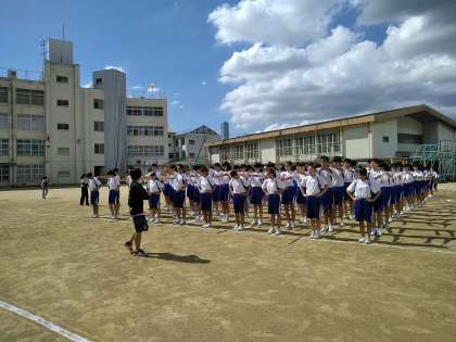 体育委員を中心に、学年の集合・行進の動きを確認しました。この日の練習で腕の振り方も少しずつ良くなってきました。