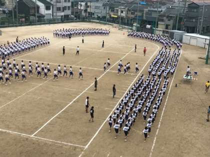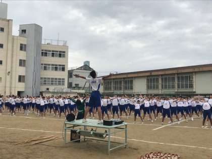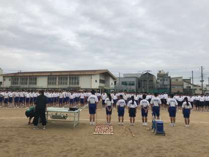 13日(木)、天候が心配されるため、時間割を変更し、4時間目に体育大会の全体練習2回目を行いました。前回行った行進の確認をしてから校歌斉唱、ラジオ体操、退場の練習をしました。