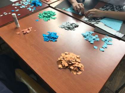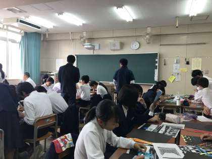 今日の5,6時間目は「文化の集い」の学年展示の製作をしました。