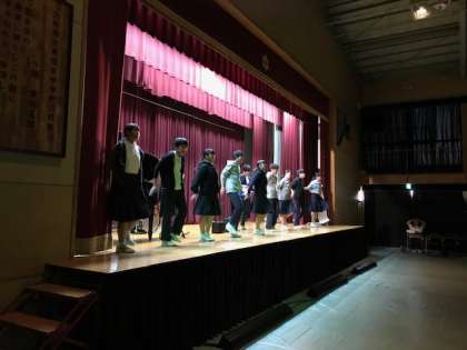3年生の舞台発表が始まりました。まずは、2組の「僕らの音楽」です。