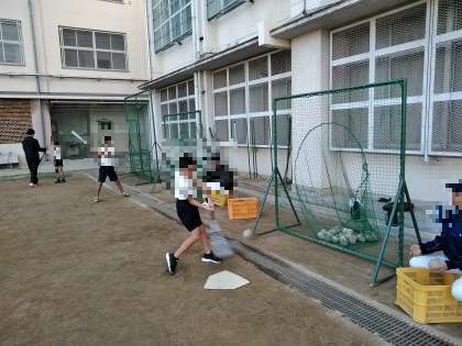 バスケ部では、先輩達と早速ゲームをしていました。野球部では、先輩達がボールを入れて、バッティングの練習をしたり、グローブをつけて守備練習なども体験していました。バドミントン部では、先輩達とペアを組んで、シャトル打ちを体験していました。