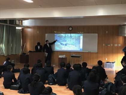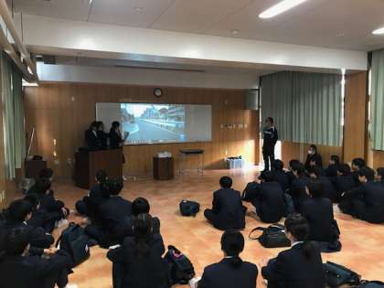地域を回ったあと、学校で3つのグループに分かれ、タブレットPCで撮影した画像を使って、それぞれに気づいたことや感じたことを発表しました。パワーポイントで編集して発表したグループもありました。