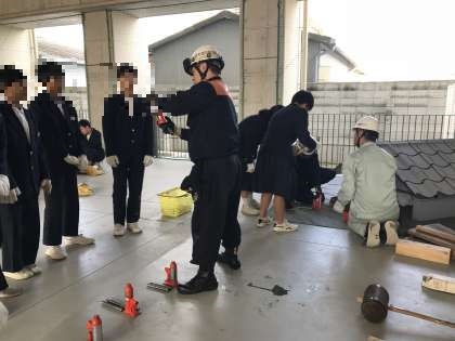 救出救護についてレクチャーを受けています。