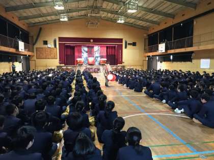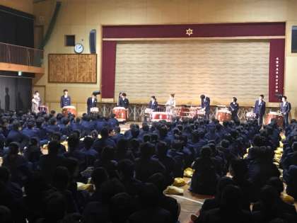 さまざまな種類の和太鼓による迫力のある演奏と、演奏者のキレのある動きやコミカルな演技に惹きこまれました。また、生徒や教員も和太鼓体験をさせていただき、「和太鼓」を身近に感じることができました。