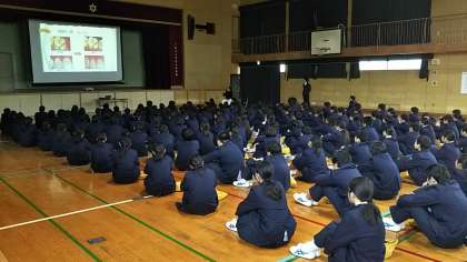 6限目、歯科校医先生に来ていただき、1年生を対象に「歯と口の健康教室」を開催しました。虫歯や歯周病にかからないためには、どのようにすればよいのかを学びました。また、朝食の大切さについても、食育の観点から教えていただきました。
