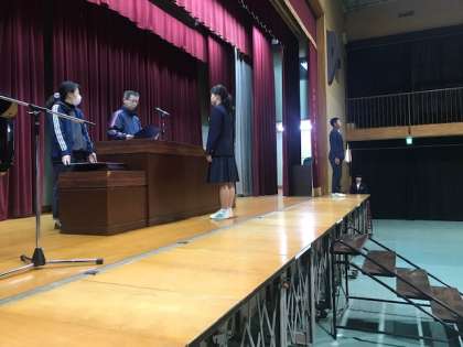 13日(水)、卒業式予行を終えました。参加した在校生代表も、緊張した面持ちで先輩方の姿を見届けていました。