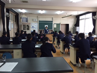 2月8日(金)午後に、進路講演会を行いました。地域の老人介護施設や幼稚園・保育園、福祉作業所で働く方々に来ていただきました。講師の先生方を全体で紹介したあと、各教室に分かれてお話を聞きました。
