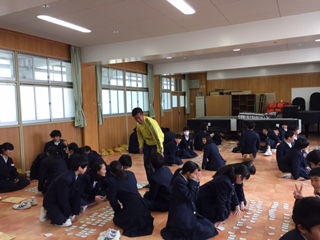 2月22日(金)午後から、百人一首大会が行われました。国語の授業や学活の時間を使って練習をしたり、休み時間を使って覚えたり、みんな熱心に取り組んでいました。