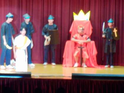 文化の集いの舞台発表では、3年生による学年劇「走れメロス」が上演されました。中学校生活最後の文化祭にふさわしく、生徒たちは太宰治の名作を自分たちなりに解釈し、堂々とした演技で物語を表現しました。メロスの熱い思いや友情を描いた場面では真剣なまなざしが光り、観客の心を強く打ちました。緊張感あふれる場面と笑いを誘う工夫が織り交ぜられ、会場は終始大きな拍手と温かな空気に包まれました。