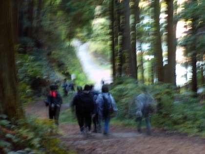 昼食が終われば、オリエンテーリングとフォトコンテストです。大人の息も上がるようなかなり険しい山道を、班のみんなと協力しながら登っていました。楽しすぎてずんずん進んだり、慣れないハイキングに苦労したりと様々な様子でしたが、はぐれそうになった子を見つけては、「待ってあげてー!」などの声も聞こえてきました。