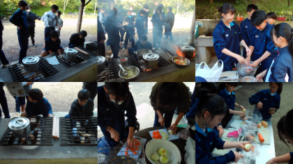 出来上がったあとは、盛り付けをし、完成した班からいただきますです。野外炊飯というなかなか体験できない活動で、子どもたちはとっても楽しそうで、笑顔あふれる昼食となっていました。