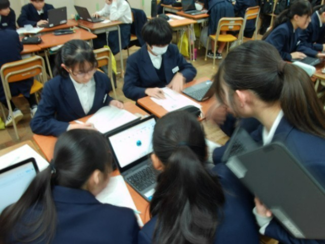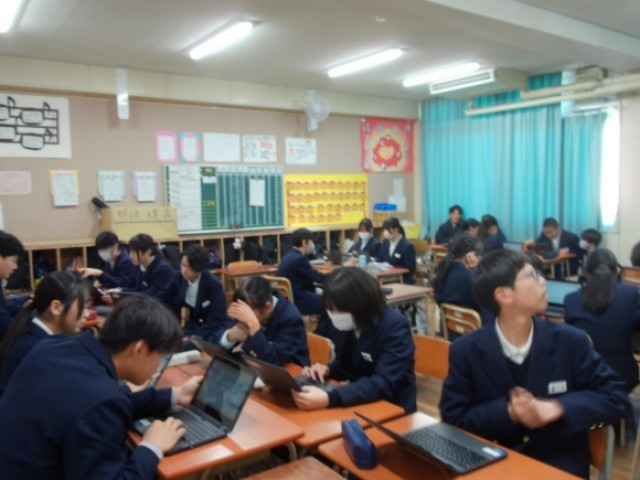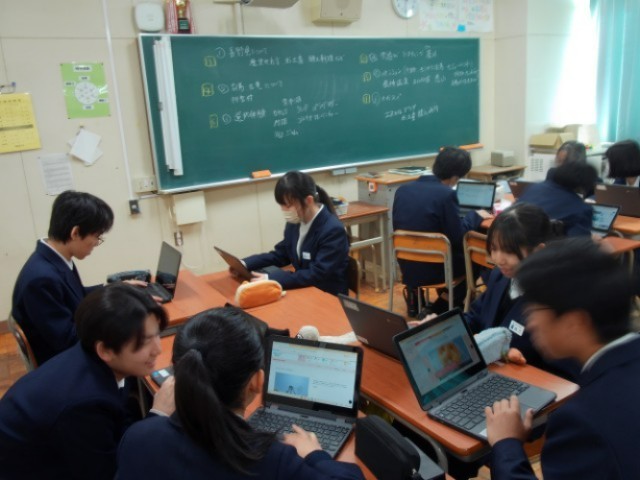 19日(月)の1限に、2年生は修学旅行の取り組みを行いました。今回は班ごとに、行き先である長野県、白馬五竜、阿智村、ナガシマスパーランドや、宿泊する施設、選択体験の内容などについての調べ学習に取り組みました。調べていくなかで、楽しみが膨らんでいったのかワクワクが止まらず、雑談を交えながらどのクラスも楽しそうな様子で、「早く行きたい!」という声がちらほら聞こえてきました。