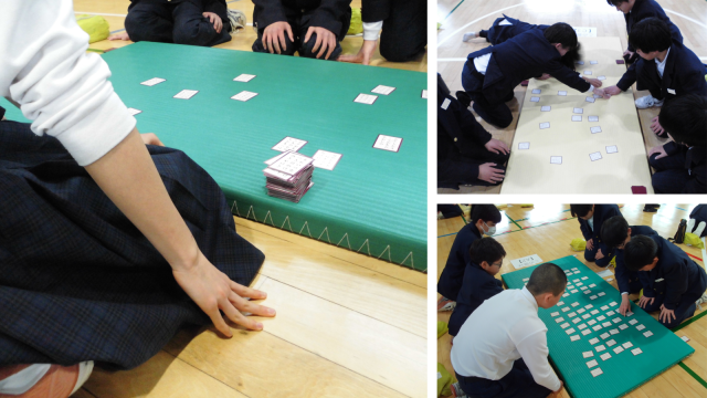 これまで授業や総合の時間を使って何度も練習を行いました。読み札が読まれると同時に素早く手を伸ばす姿もみられ、練習の成果がしっかりと表れていました。
