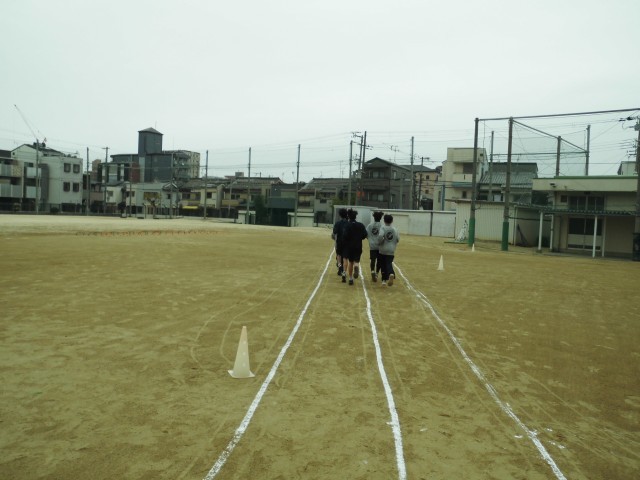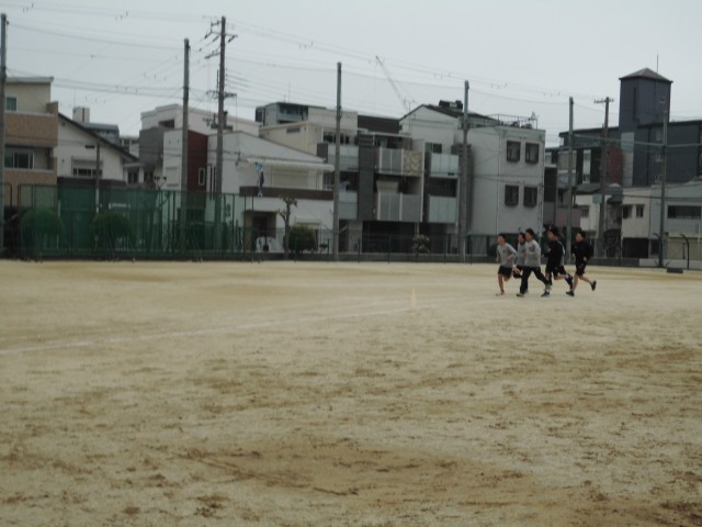 グラウンドを分け合い、部活動が行われています。