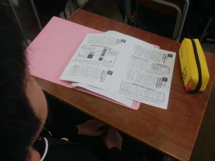昨日の総合の時間で、2回目の進路学習を行いました。内容は、特に公立の高校入試制度を学びました。中でも、英語では「書くこと」「聞くこと」「読むこと」と「話すこと」を足した4技能をバランスよく学習することが大切だと言われています。国際化が進む日本で、より多くの外国人とコミュニケーションをとるために必要と考えられているため、前向きに将来を見据えて学習してほしいと思います。