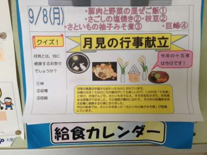 今日の給食は〜月見の行事献立 給食カレンダー〜
